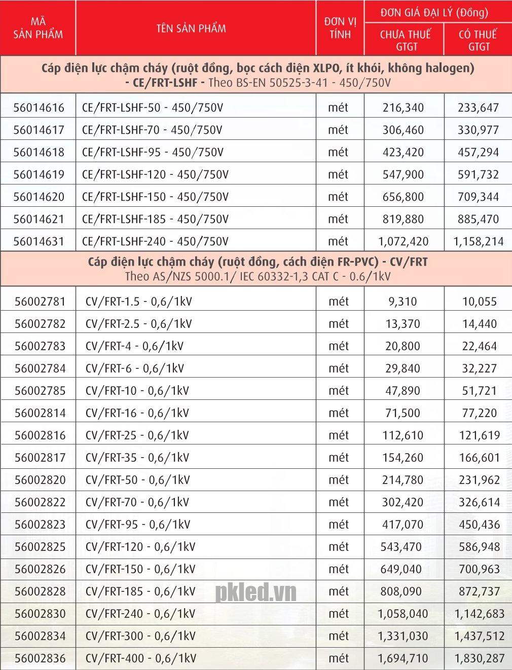 | Loại đây | Cáp điện lực chậm cháy |