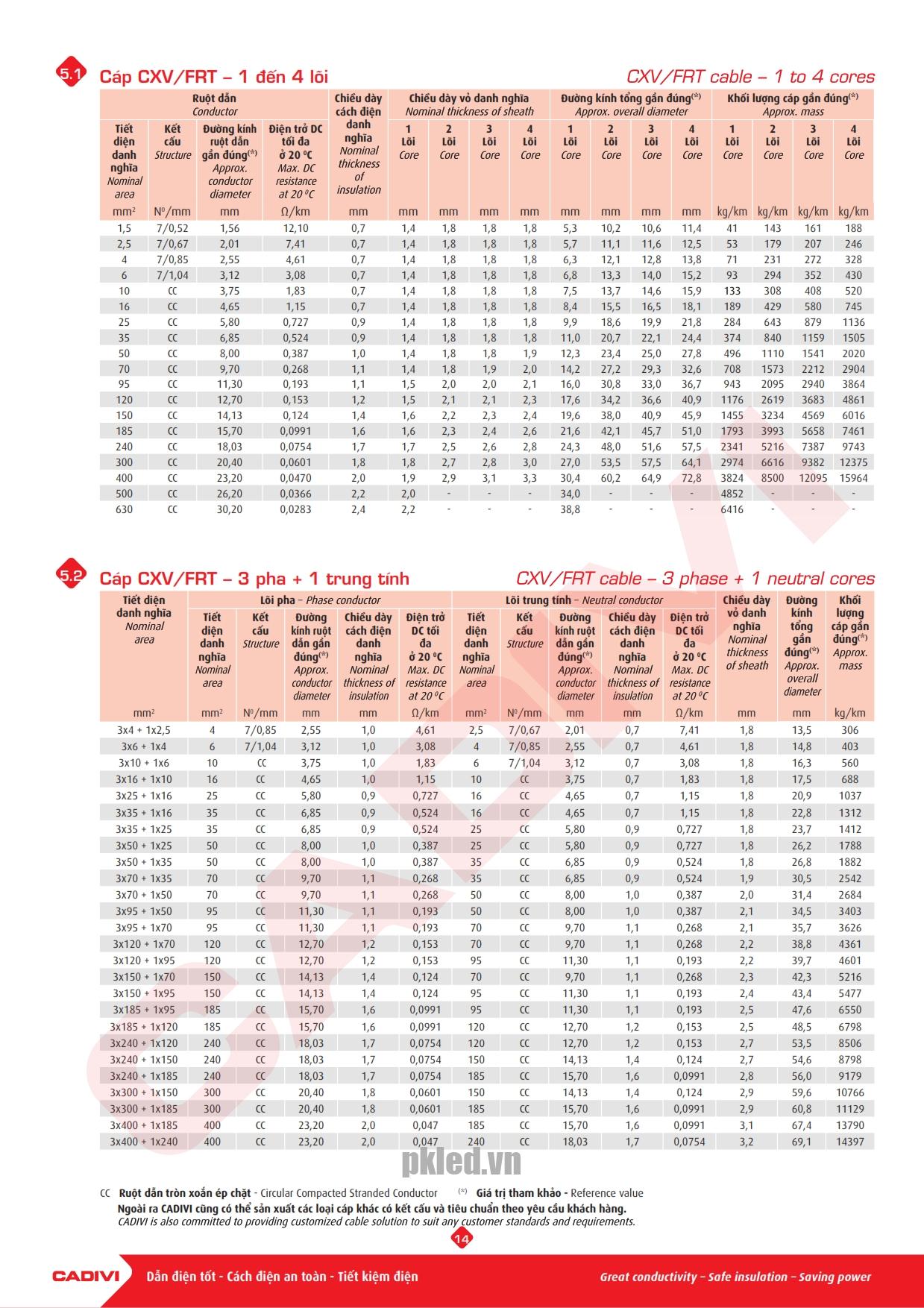 Cadivi CXV/FRT 3×50 Cáp điện lực hạ thế chậm cháy 3 lõi đồng :