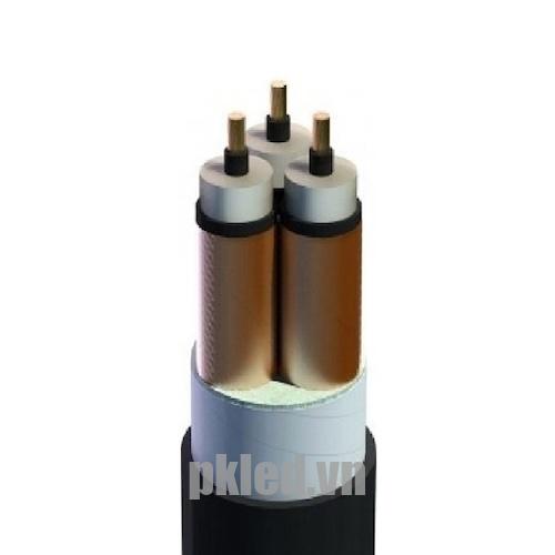 Cáp trung thế có màn chắn kim loại, có giáp bảo vệ (3 lõi, ruột đồng, bán dẫn ruột dẫn, cách điện XLPE, bán dẫn cách điện, màn chắn kim loại bằng đồng 0.05mm cho từng lõi, giáp bằng thép bảo vệ, vỏ bọc PVC) – CXV/SE/DSTA. Theo TCVN 5935-2 / IEC 60502-2 – 12/20 (24)kV hoặc 12.7/22 (24)kV