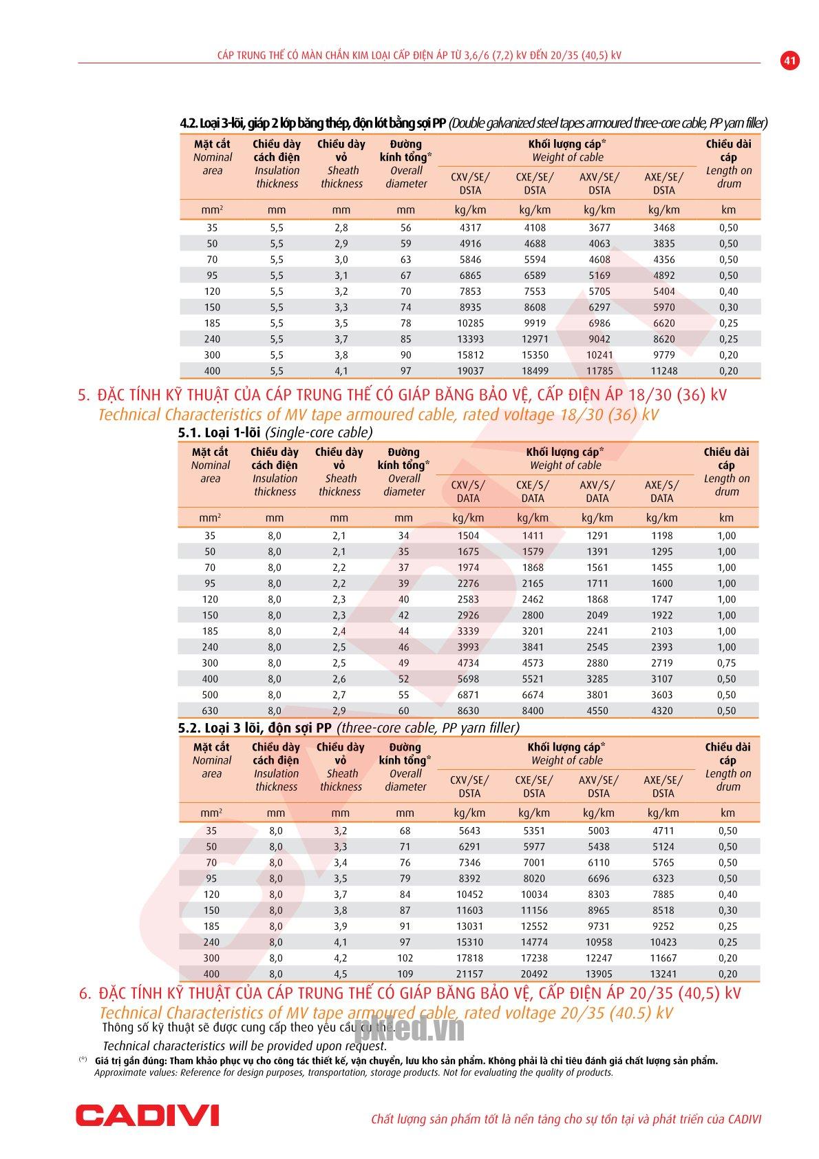 – 18/30 (36) – 20/35 (40,5) kV: theo tiêu chuẩn TCVN 5935-1995/ IEC502