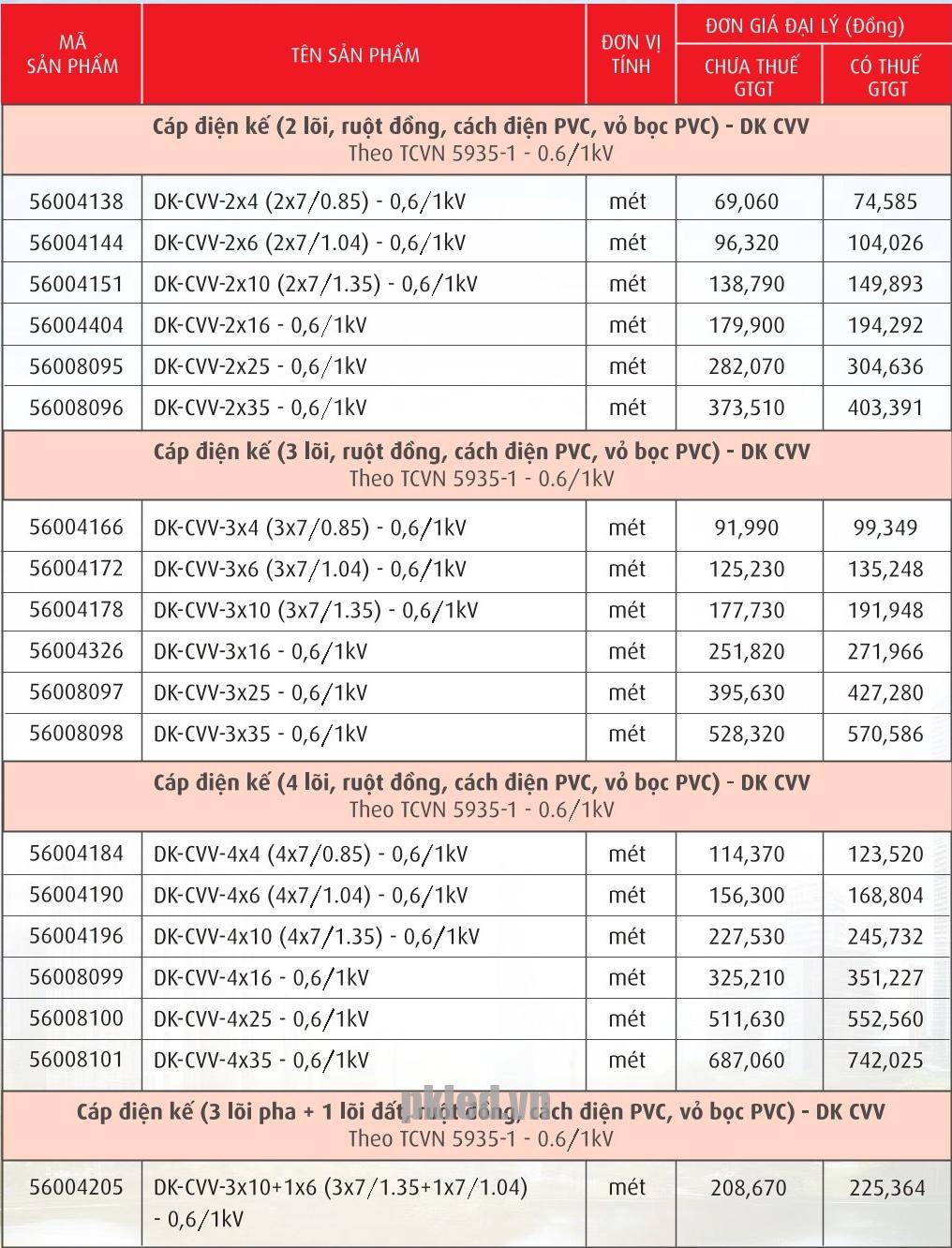 Cadivi DK-CVV 3×25 cáp điện kế 3 lõi 7 sợi dẫn đồng /lõi