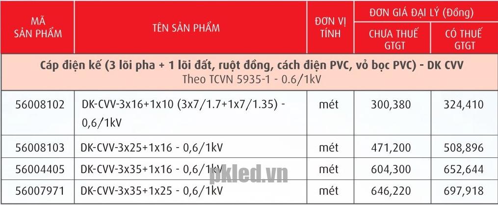 Cadivi DK-CVV 4x3x35+1×25 cáp điện kế 4 lõi 7 sợi dẫn đồng :