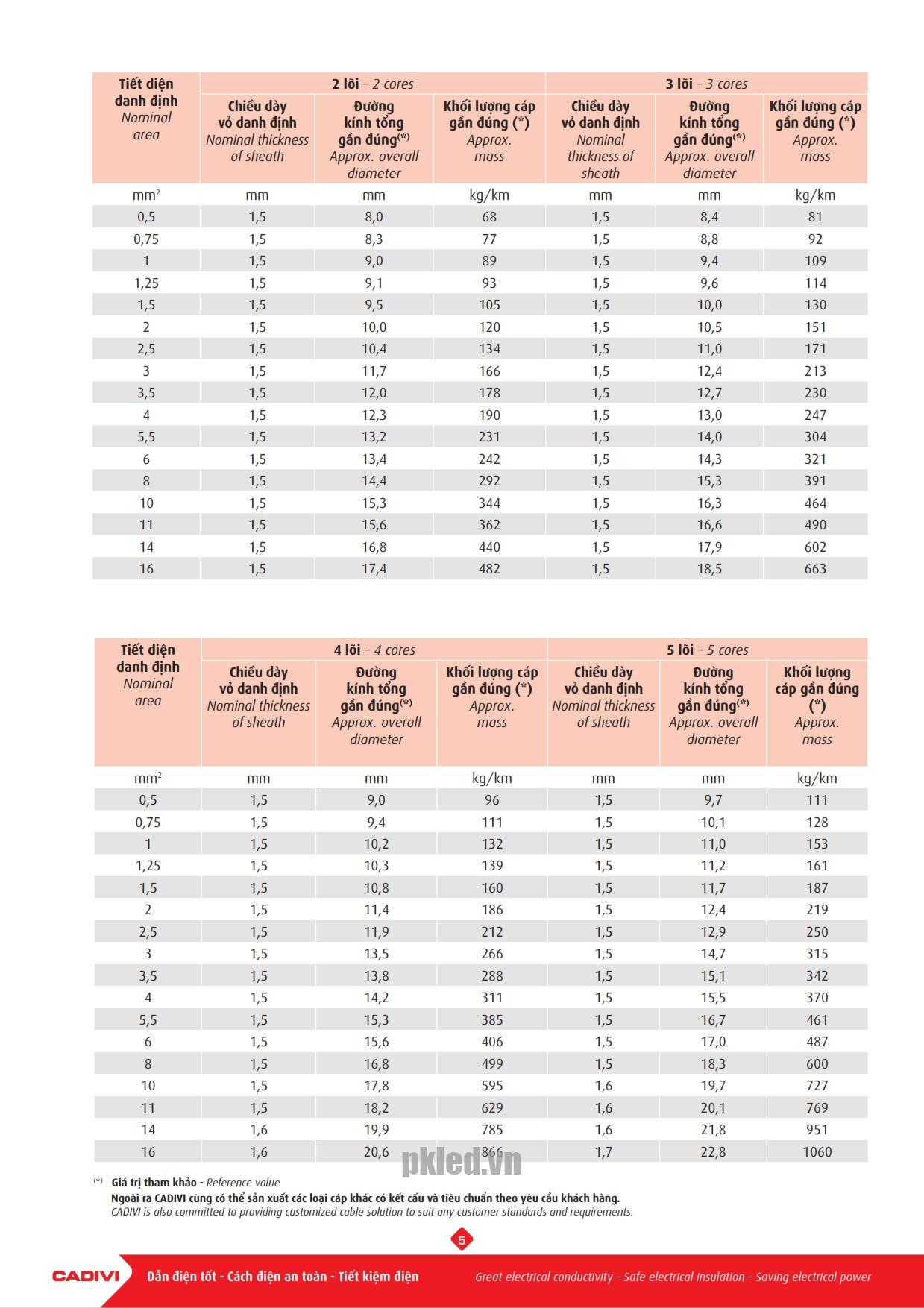 – Ngoài ra CADIVI cũng có thể sản xuất các loại cáp khác có kết cấu và tiêu chuẩn theo yêu cầu khách hàng.