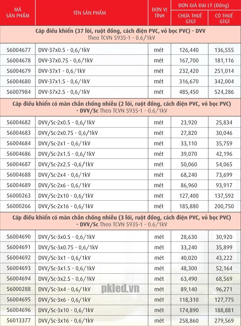 – Cáp điều khiển có màn chắn chống nhiễu DVV/Sc sử dụng cho mạch điều khiển, cấp điện áp 0,6/1 kV, tần số 50Hz, lắp đặt cố định.