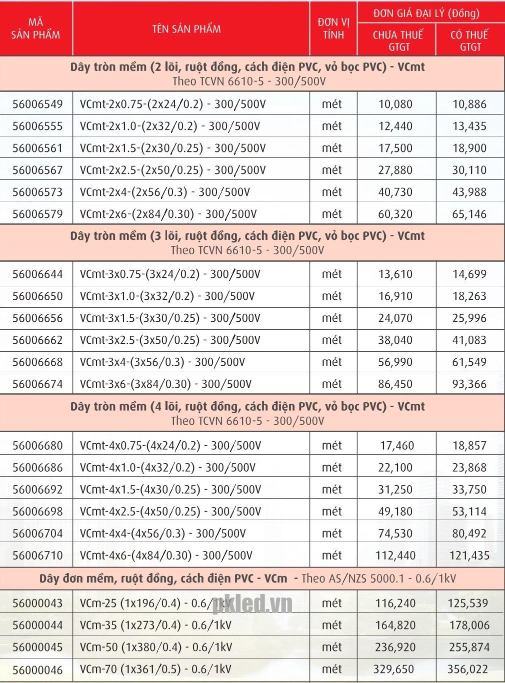 | Chất liệu | Dây tròn mềm ruột đồng cách điện PVC, vỏ bọc PVC |