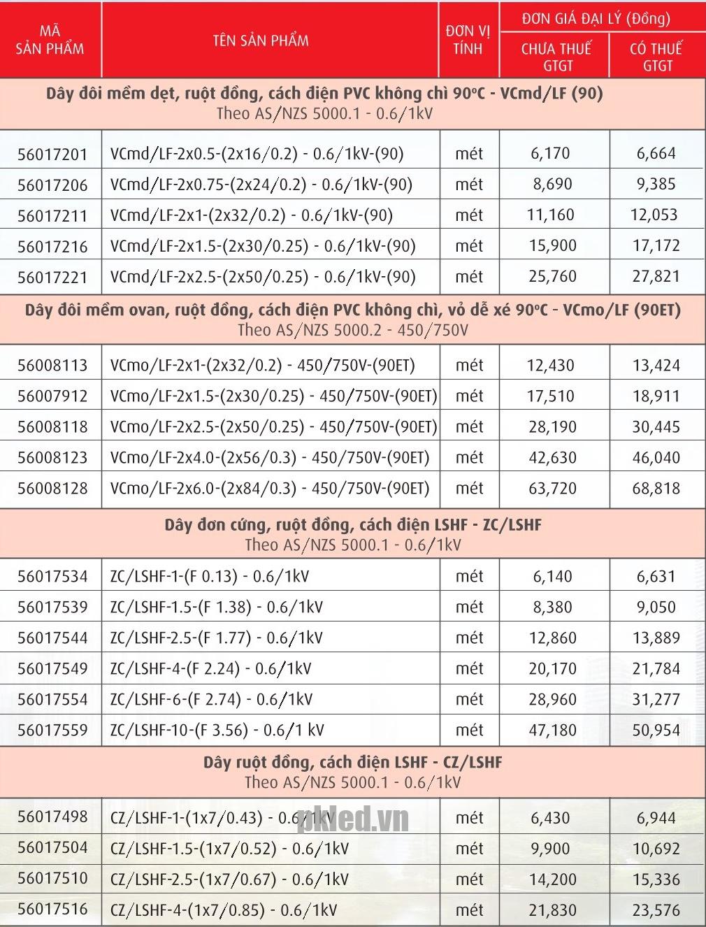 (Theo catalogue Cadivi)