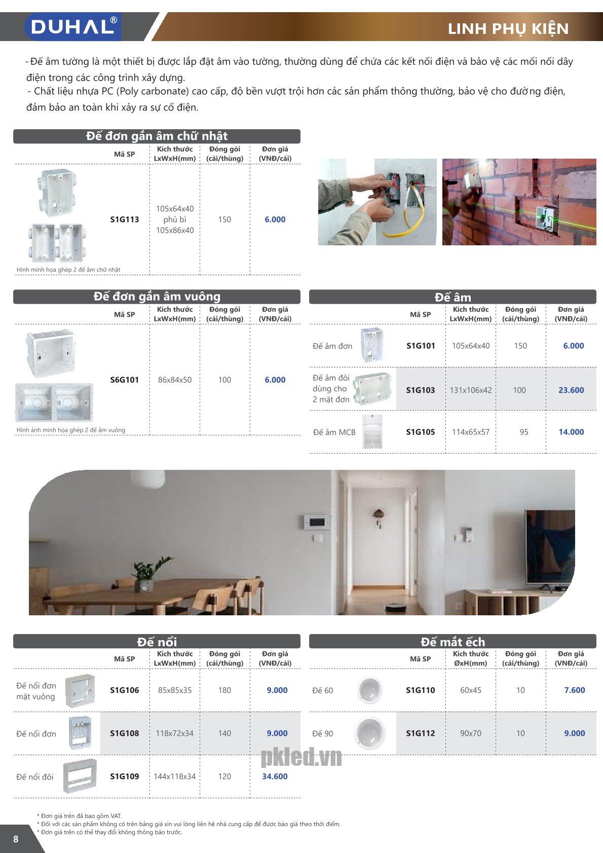 Đế đơn gắn âm vuông Duhal S6G101 giúp lắp đặt công tắc, ổ cắm âm tường gọn gàng và thẩm mỹ.