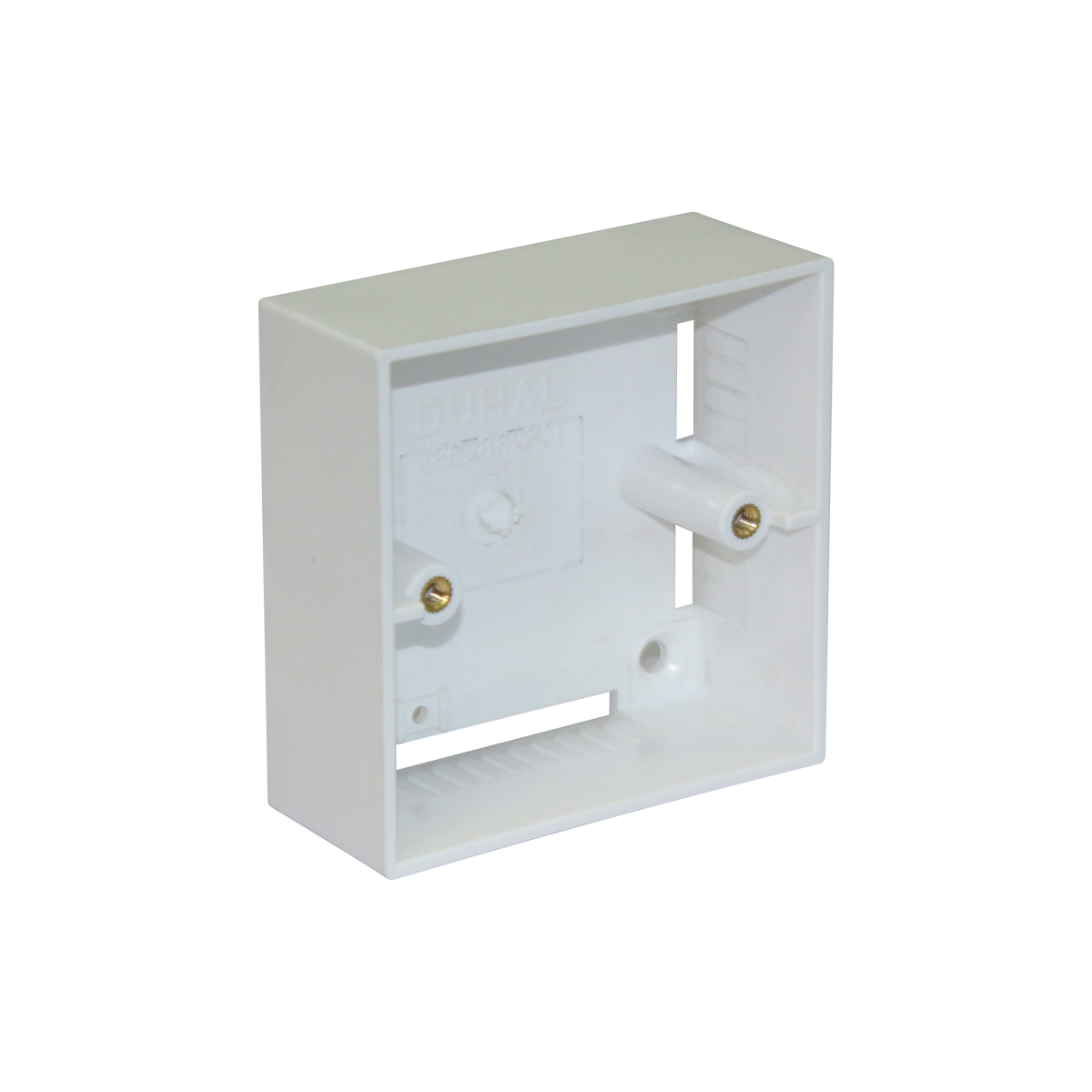 Đế nổi đơn mặt vuông Duhal S1G106 giúp lắp thiết bị điện dạng nổi gọn gàng, dễ thi công và thẩm mỹ.