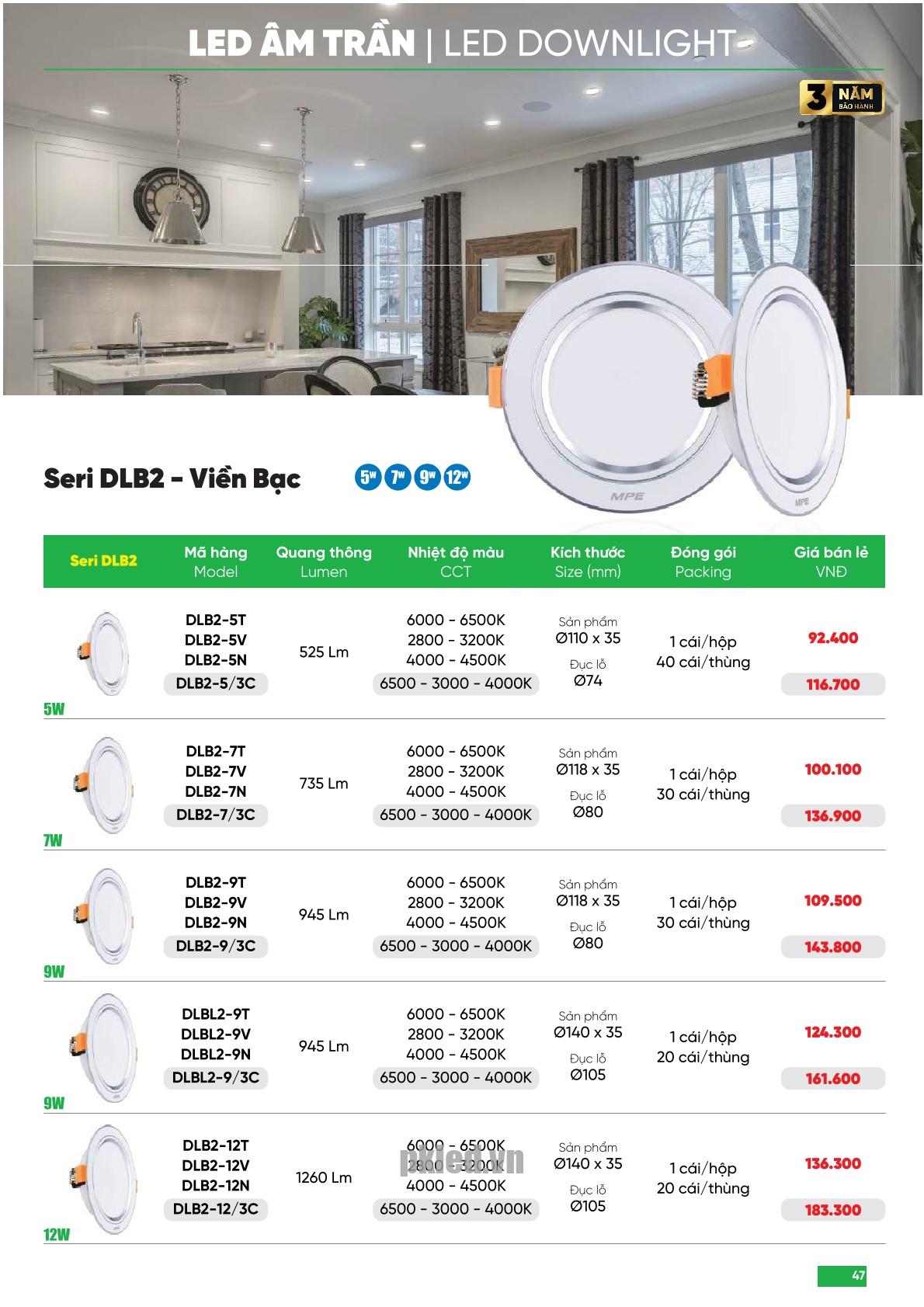 Đèn LED Downlight MPE sử dụng Driver Isolated chống nhiễu tốt, giảm nhiệt độ cho driver, tăng tuổi thọ đèn. Ngoài ra, Seri DLV-DLB-DLT được đúc nhôm nguyên khối, bề mặt sơn tĩnh điện cao cấp giúp tản nhiệt nhanh.