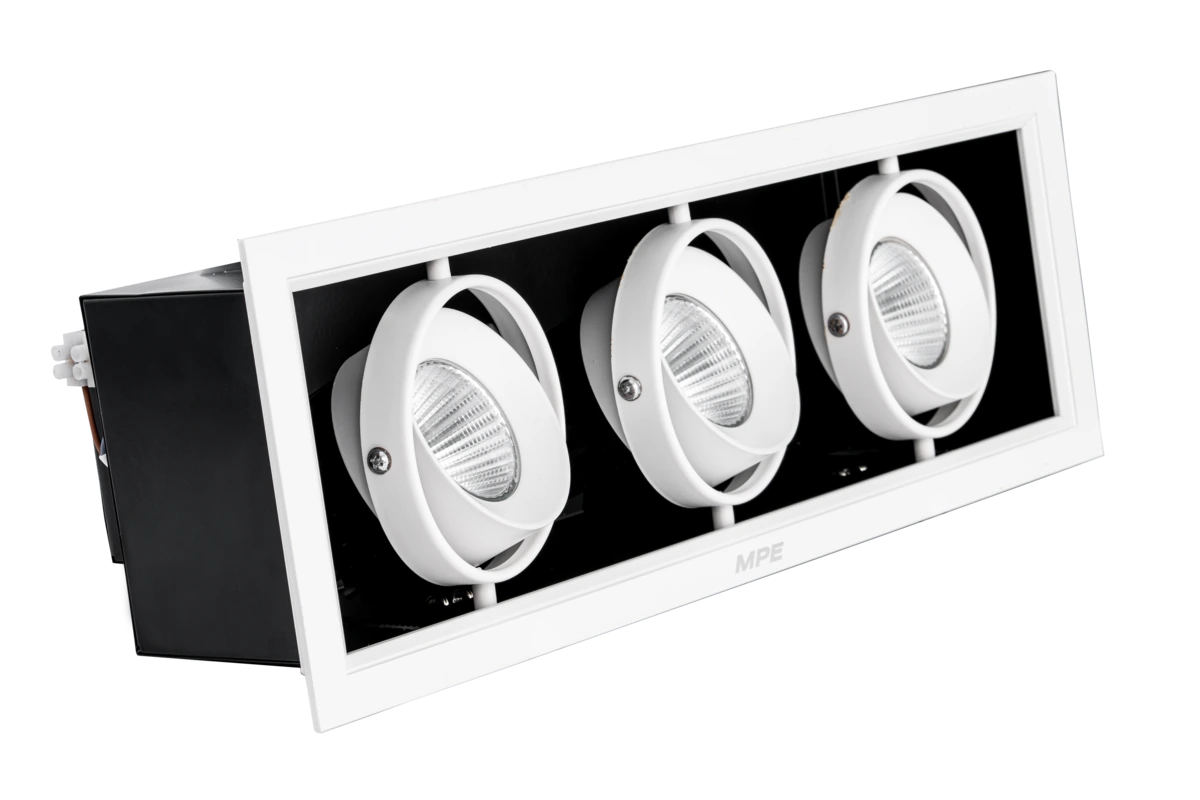 Đèn LED downlight âm trần chiếu điểm MPE DLS-312V với 3 đèn 12W ánh sáng vàng ấm đem đến ánh sáng nhấn mềm mại, tạo chiều sâu và cảm giác ấm áp cho không gian. Thiết kế 3 đèn giúp mở rộng vùng chiếu nhấn hơn, phù hợp trưng bày nội thất lớn, tranh ảnh rộng hoặc khu vực cần điểm sáng nghệ thuật. Ánh sáng vàng dễ chịu cho mắt, CRI > 80 giúp tái hiện màu sắc trung thực, phù hợp khu vực thư giãn, phòng khách, quầy lễ tân và cửa hàng. Driver tích hợp và thiết kế âm trần gọn giúp lắp đặt nhanh và thẩm mỹ. Thân đèn tản nhiệt hiệu quả giúp vận hành ổn định lâu dài; tuổi thọ ~30.000 giờ. Với bảo hành 3 năm, sản phẩm là lựa chọn chiếu điểm ấm áp, linh hoạt và bền bỉ.