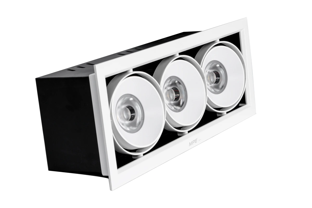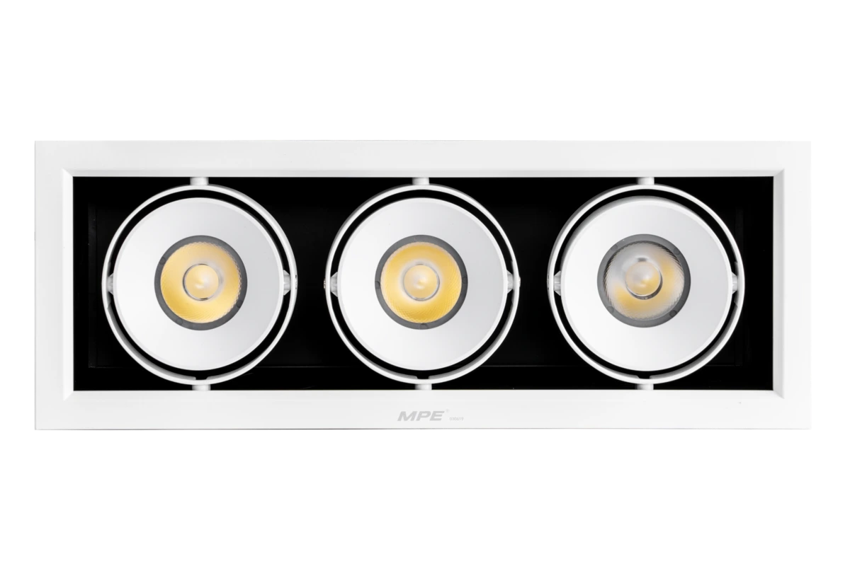 Đèn downlight chiếu điểm MPE DLS-320N 3 đèn 20W ánh sáng trung tính, chiếu nhấn cân bằng, phù hợp không gian nội thất hiện đại.