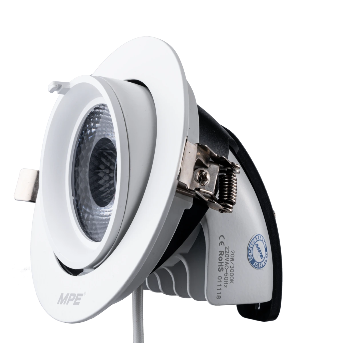 Đèn downlight chiếu điểm MPE DLA-20V 20W ánh sáng vàng ấm, xoay chỉnh linh hoạt, tạo điểm nhấn sang trọng.
