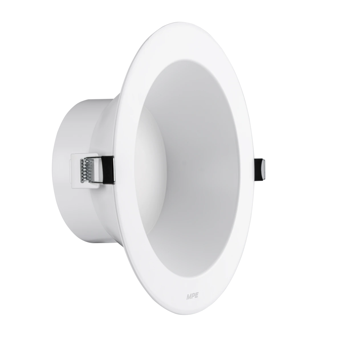 Đèn LED downlight âm trần nhôm MPE DLF2-40T mạnh mẽ với công suất 40W và ánh sáng trắng rõ nét, là lựa chọn tối ưu để chiếu sáng rộng cho không gian lớn như showroom, sảnh, phòng họp hoặc văn phòng rộng. Ánh sáng mạnh, đều khắp được thiết kế để hạn chế vùng tối và đem lại trải nghiệm thị giác thoải mái, hiệu quả cả ngày. Sản phẩm sử dụng Chip LED COB chất lượng, kết hợp chỉ số hoàn màu CRI > 80, giúp màu sắc vật thể hiển thị trung thực và tự nhiên hơn. Thân đèn bằng nhôm tản nhiệt cao cấp giúp duy trì hiệu quả ánh sáng ổn định và giảm nóng bóng khi dùng lâu dài. Driver tích hợp và thiết kế âm trần giúp lắp đặt nhanh, gọn, phù hợp nhiều kiểu kiến trúc trần. Với tuổi thọ ~30.000 giờ và bảo hành 3 năm, đây là giải pháp chiếu sáng tiết kiệm điện, bền bỉ cho các không gian nội thất lớn.