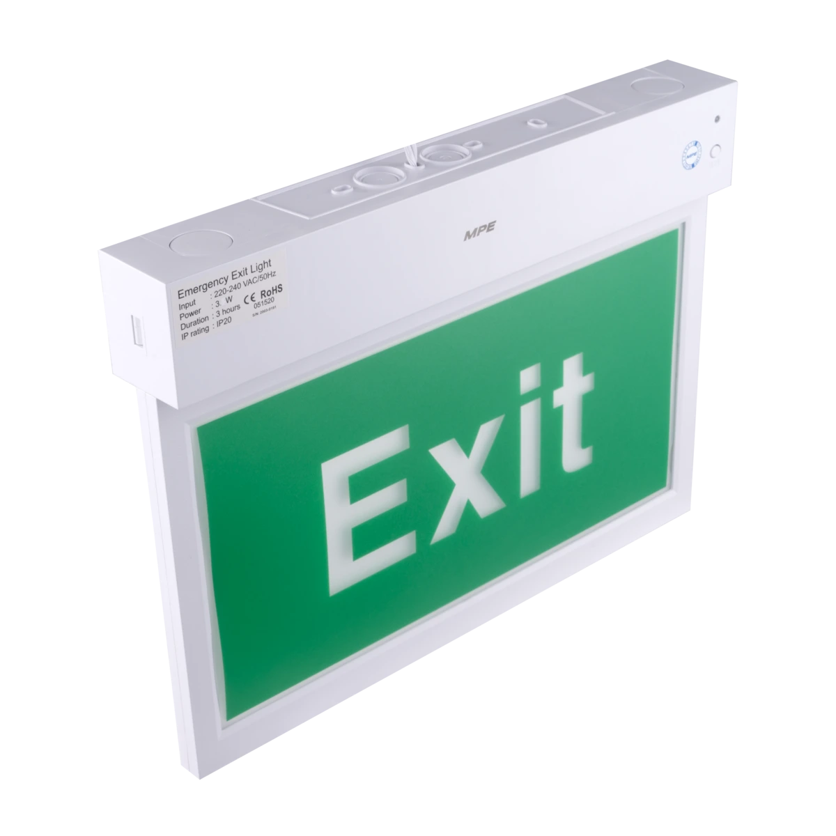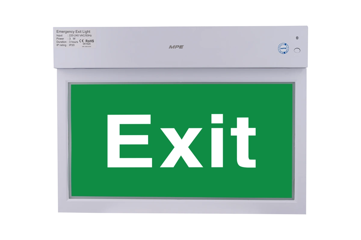 Đèn Exit đa năng MPE EX-M đèn báo 1 mặt 3W, ánh sáng đỏ rõ rệt, tiết kiệm điện năng & hướng dẫn thoát hiểm chính xác.
