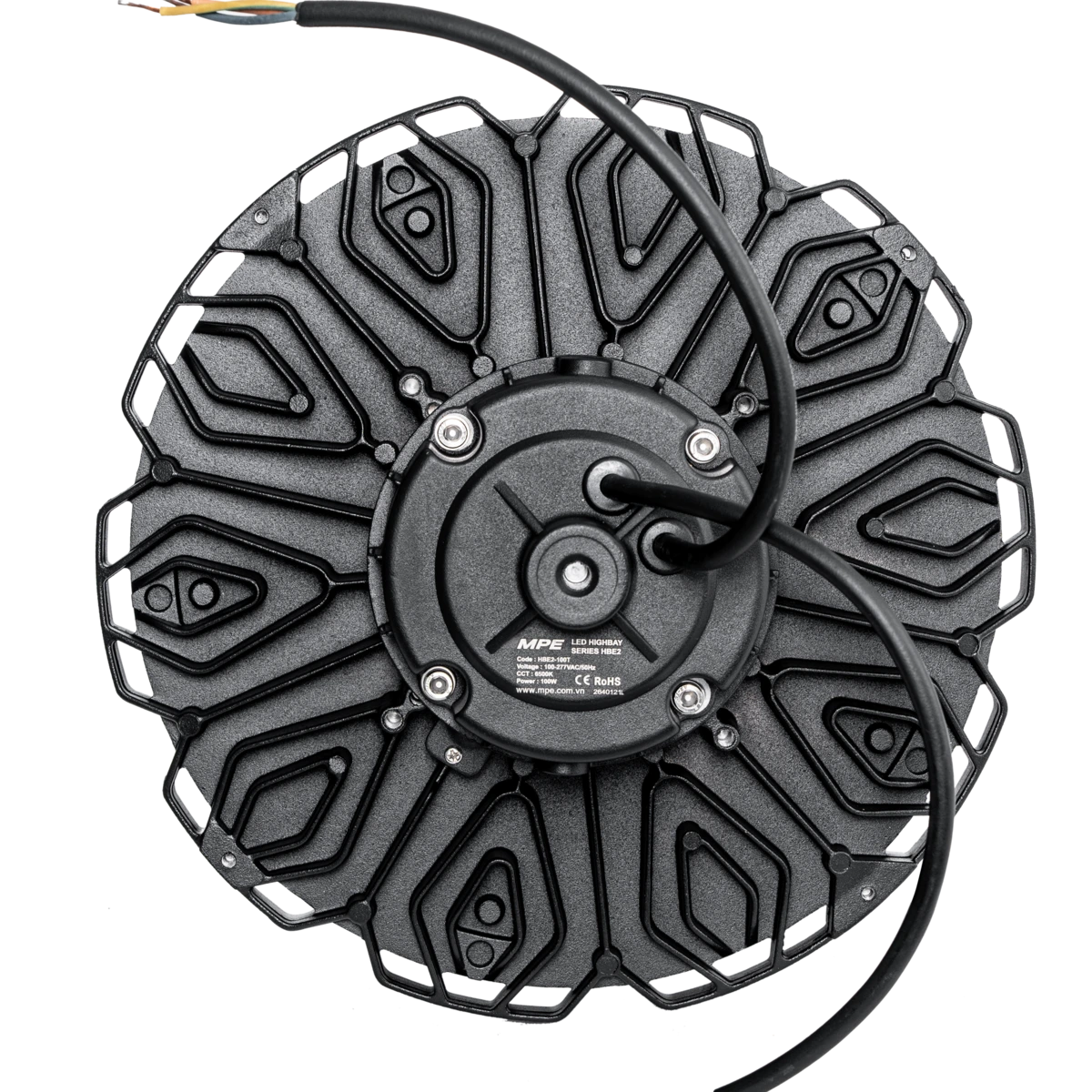 Đèn highbay MPE HBE2-100T 100W ánh sáng trắng mạnh, IP65 bền bỉ, chiếu sáng nhà xưởng nhỏ & vừa.