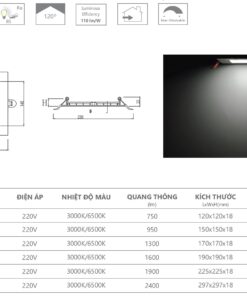 ✔ Nhiệt độ màu đa dạng: 3000K (vàng ấm) và 6500K (trắng sáng) – linh hoạt đáp ứng nhu cầu chiếu sáng theo mục đích sử dụng.