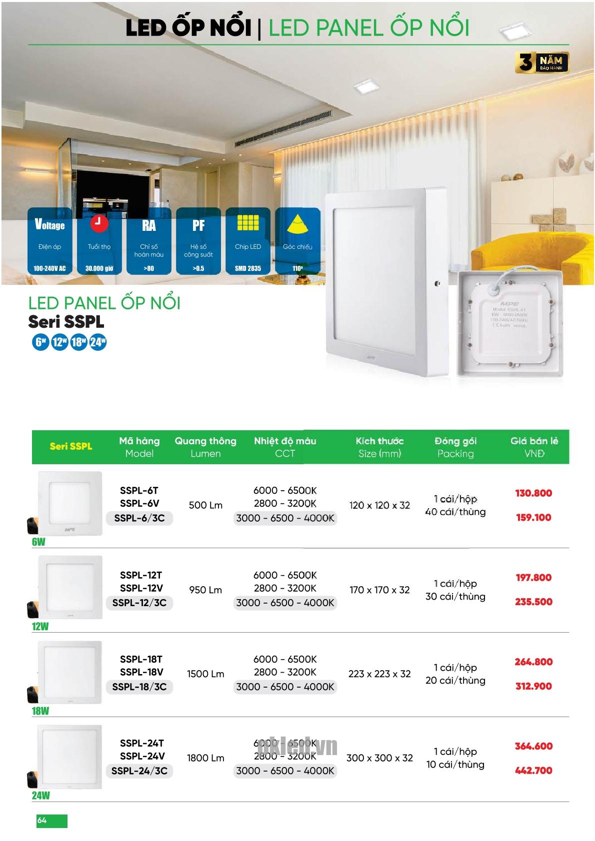 Đèn LED Panel ốp nổi MPE Seri SRPL/ SSPL với các đặc điểm nổi bật: