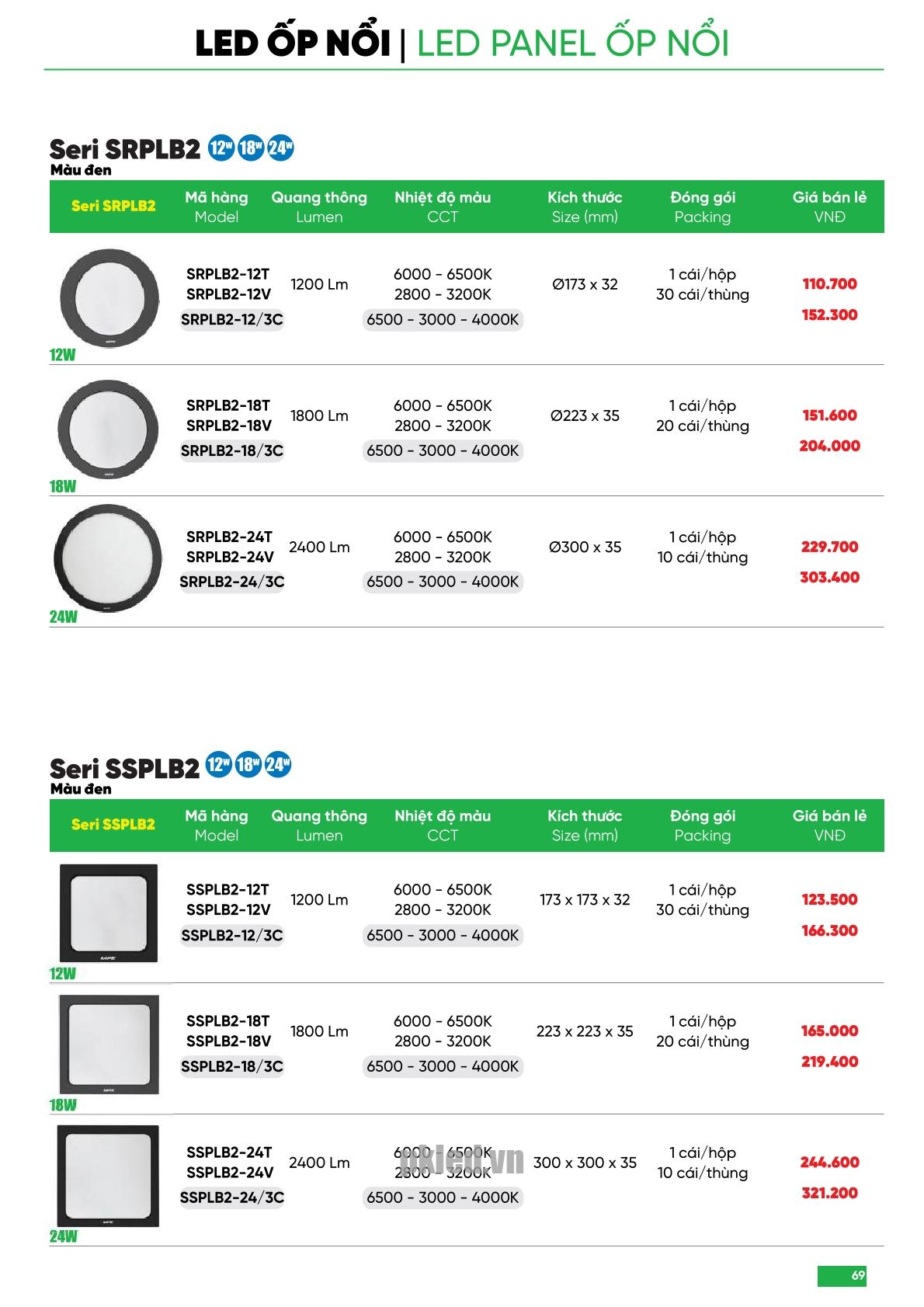 Đánh giá Đèn panel bo viền 12W 3 chế độ màu SRPLB2-12/3C MPE