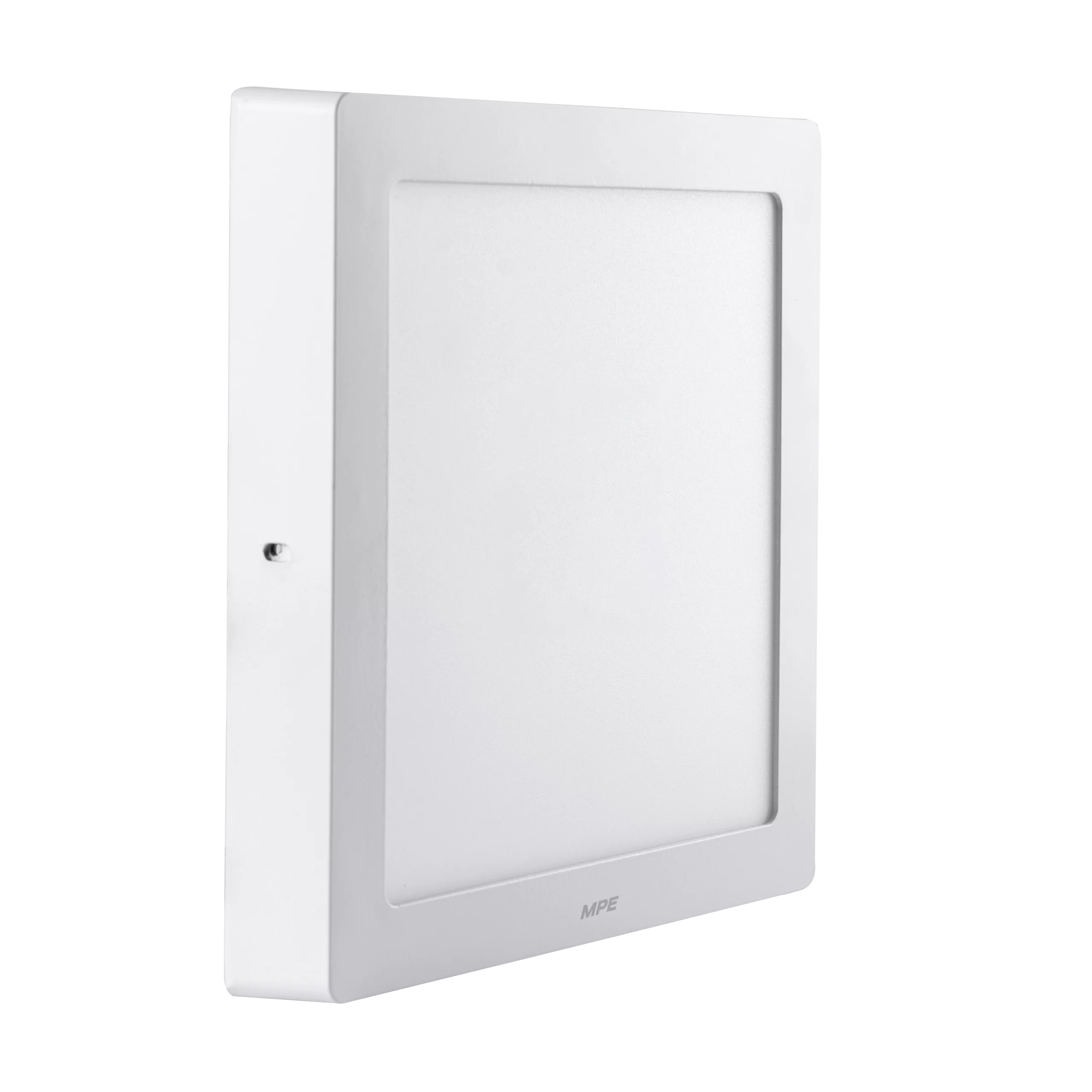 Đèn LED panel ốp nổi vuông MPE SSPL-18V/DIM 18W ánh sáng vàng ấm, điều chỉnh độ sáng, phù hợp không gian thư giãn.