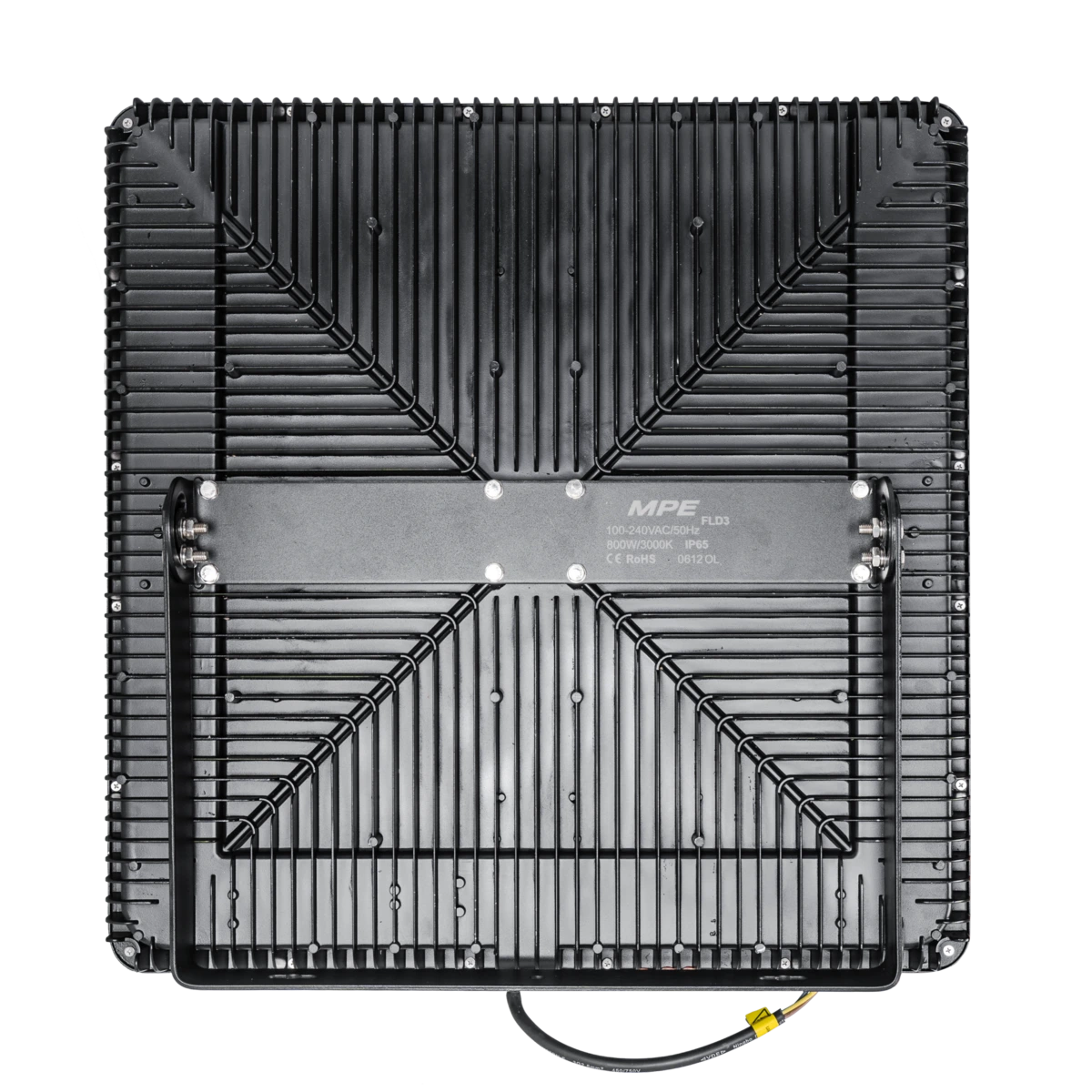 LED pha MPE FLD3-800V 800W ánh sáng vàng ấm, IP65 bền mưa nắng, chiếu sáng rộng & mềm cho sân bãi & khu mở lớn.