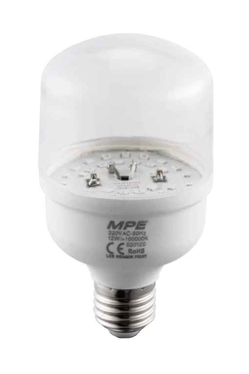 Phương pháp dùng đèn thắp sáng trong canh tác nông nghiệp giúp cây ra hoa trái vụ được sử dụng phổ biến đặc biệt trong trồng thanh long. Sản phẩm LED Bulb thanh long MPE với 2 dòng công suất 9W