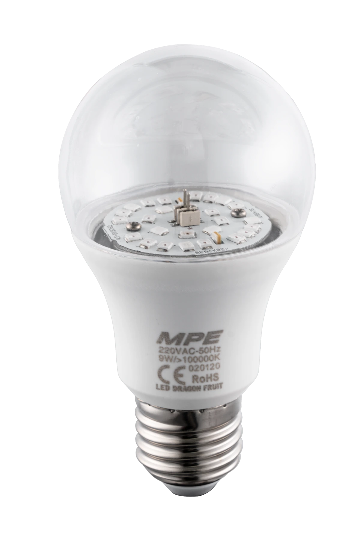Phương pháp dùng đèn thắp sáng trong canh tác nông nghiệp giúp cây ra hoa trái vụ được sử dụng phổ biến đặc biệt trong trồng thanh long. Sản phẩm LED Bulb thanh long MPE với 2 dòng công suất 9W