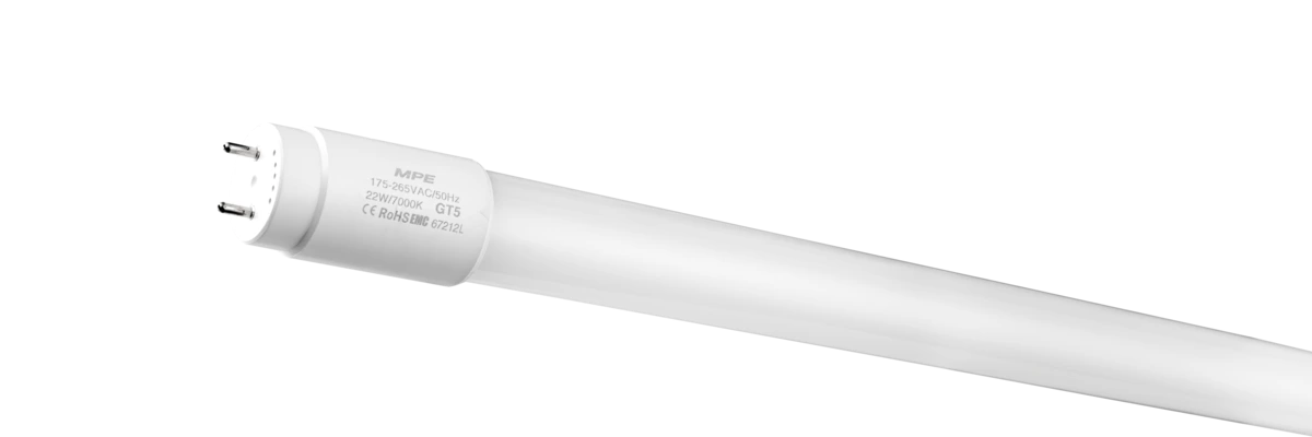 LED tube thủy tinh MPE GT5-120T 22W ánh sáng trắng, chiếu sáng rõ rệt & đều, phù hợp văn phòng & phòng học.