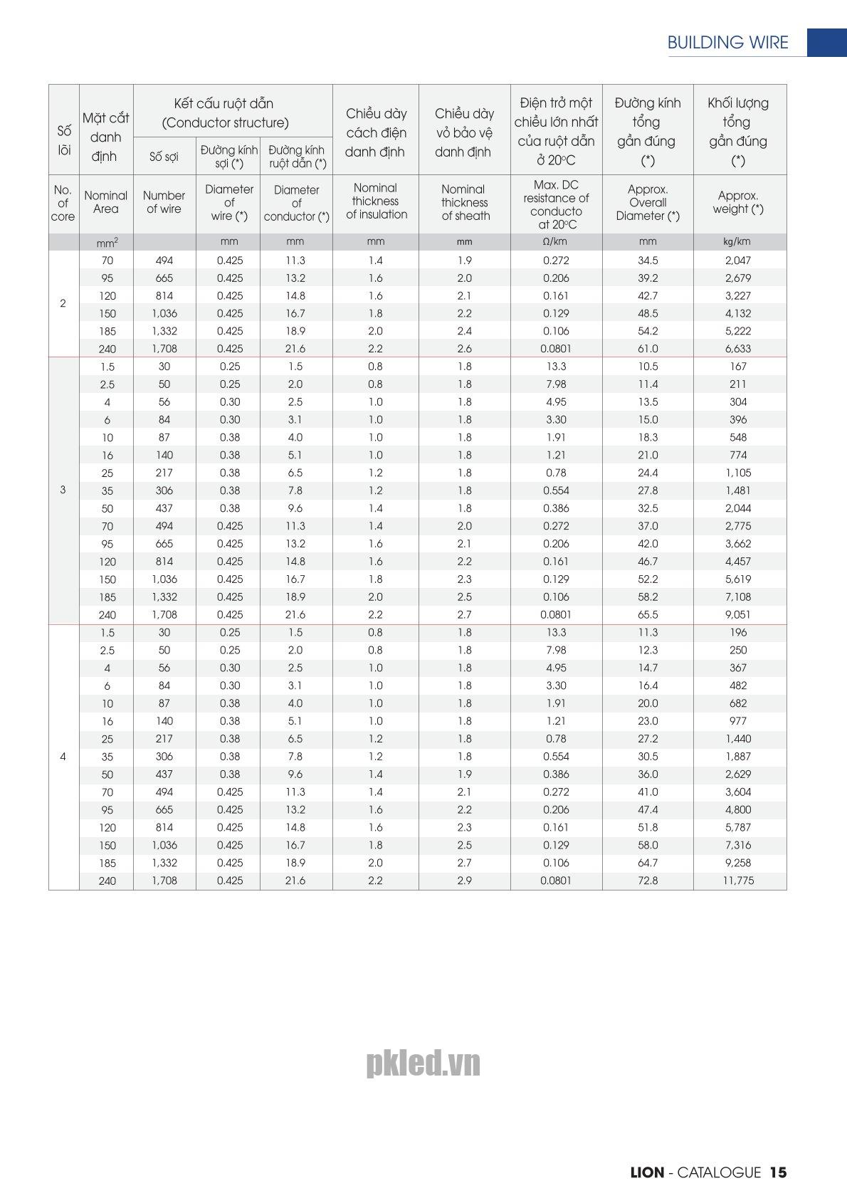 – Số ruột dẫn: 2, 3 hoặc 4