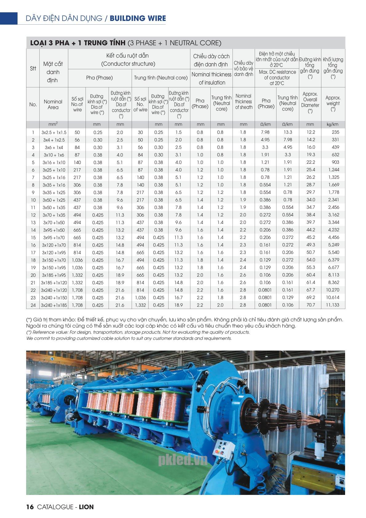| Mặt cắt danh định (mm2) | 3x16+1x10 |