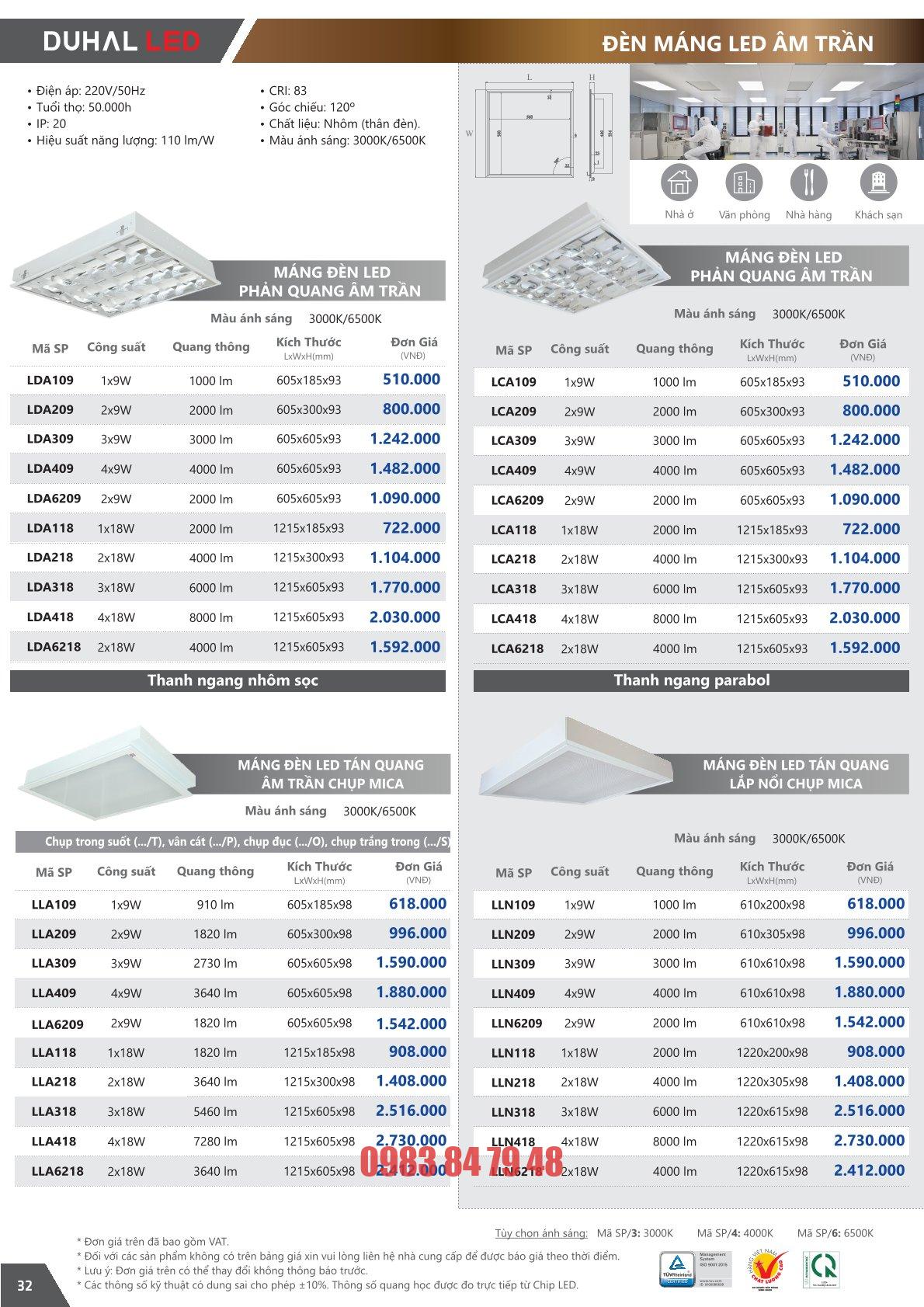 | Hiệu suất chiếu sáng | 110 lm/W |