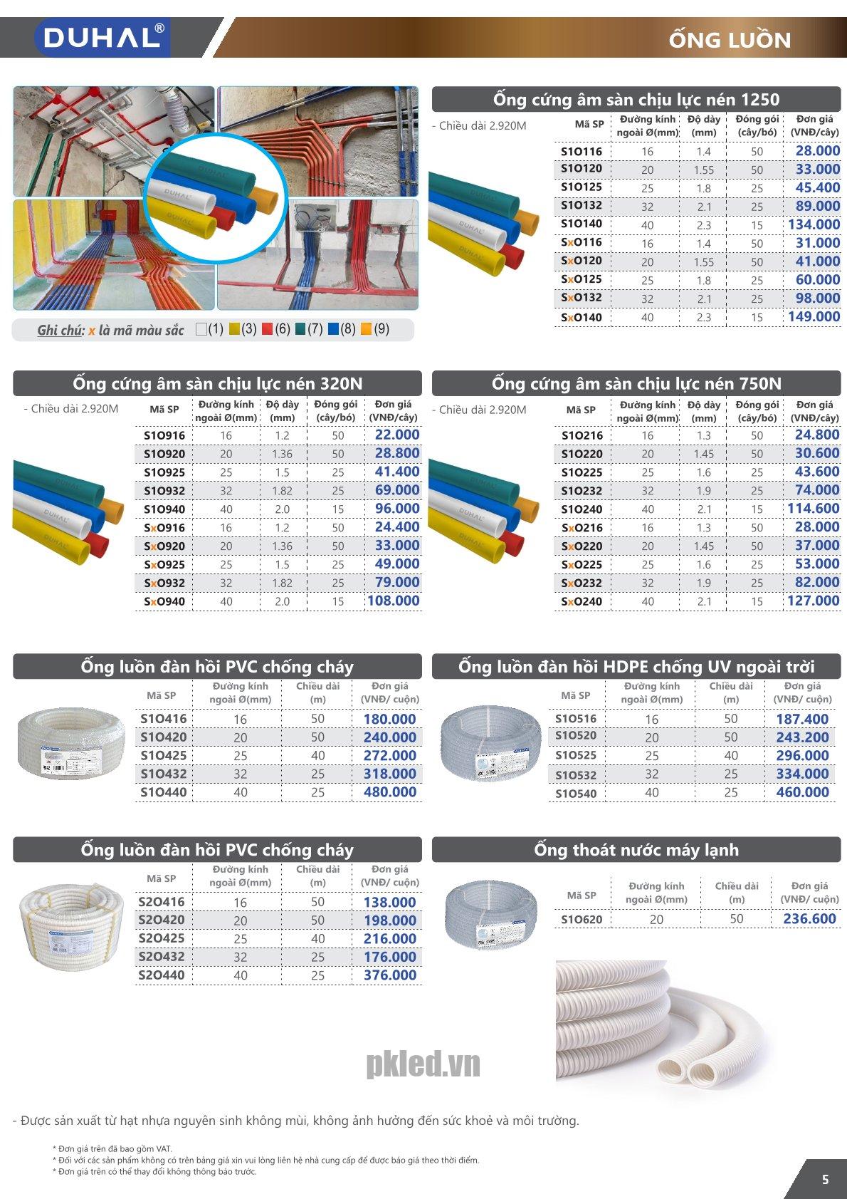 Ống cứng âm sàn chịu lực nén 1250N màu trắng S1O125 Duhal